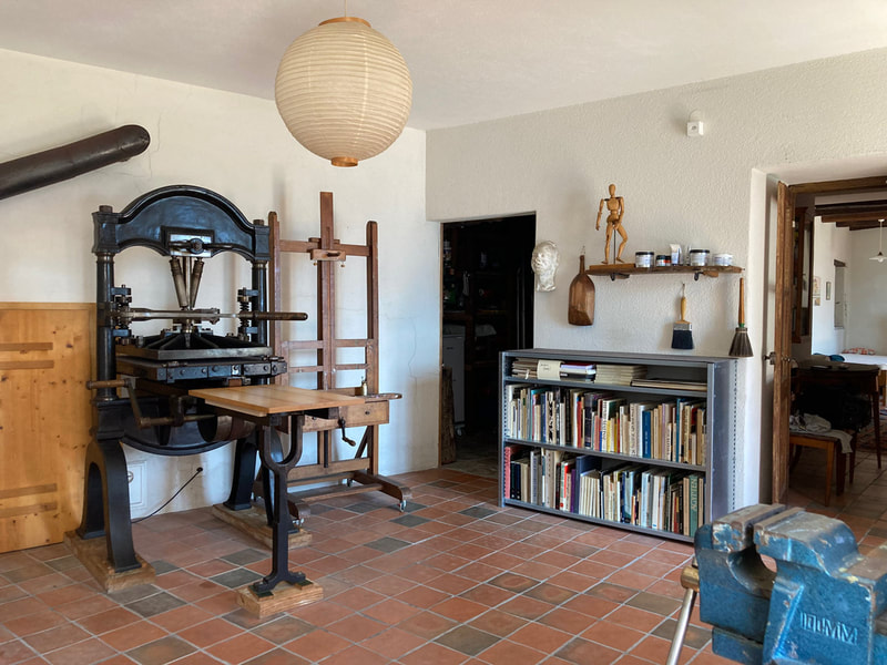 Studiowohnung mit Handdruckatelier. Du willst schreiben, zeichnen, malen, oder mit einer Kniehebelpresse Linol- oder Holzschnitte drucken? Du brauchst einen Ort, der Dich mit südlichem Licht, einem immer neuen Blick auf den See und die Berge inspiriert? Unser Handdruckatelier mit Wohnstudio in einer ehemaligen Osteria im Tessin bietet Dir die Möglichkeit, Deinen gestalterischen Ideen nachzugehen, den Blick schweifen zu lassen, die Gedanken auf neue Wege zu bringen. Freie Plätze noch zwischen Anfang April und Ende Oktober.
